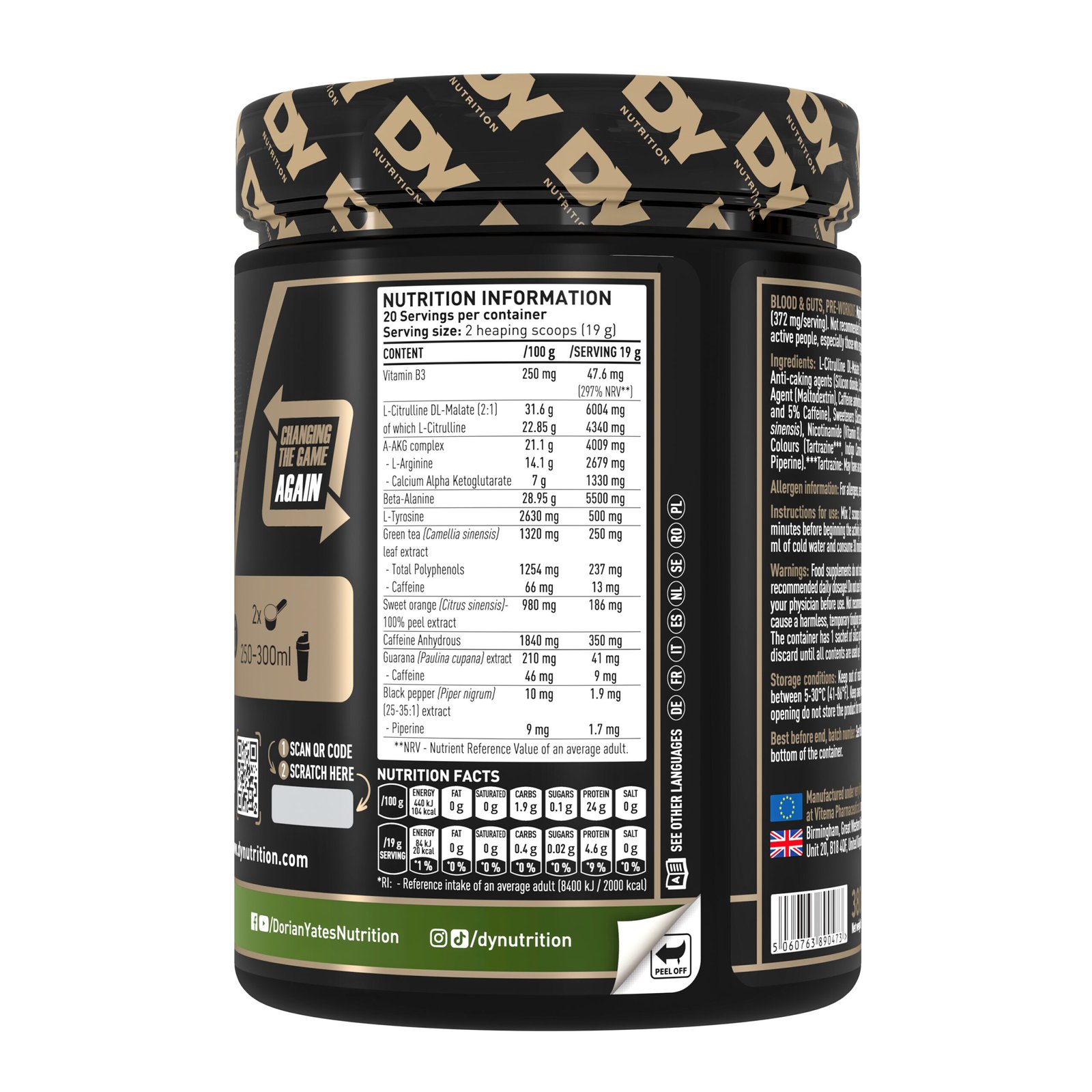 This new Blood & Guts formula fuses together all the ingredients needed to ‘get in the zone’ and prime your body, mentally and physiologically, for intense workouts. Every ingredient has been meticulously selected in order to ensure there are no fillers and only the strongest possible ingredients at the correct dosages are included in the product.