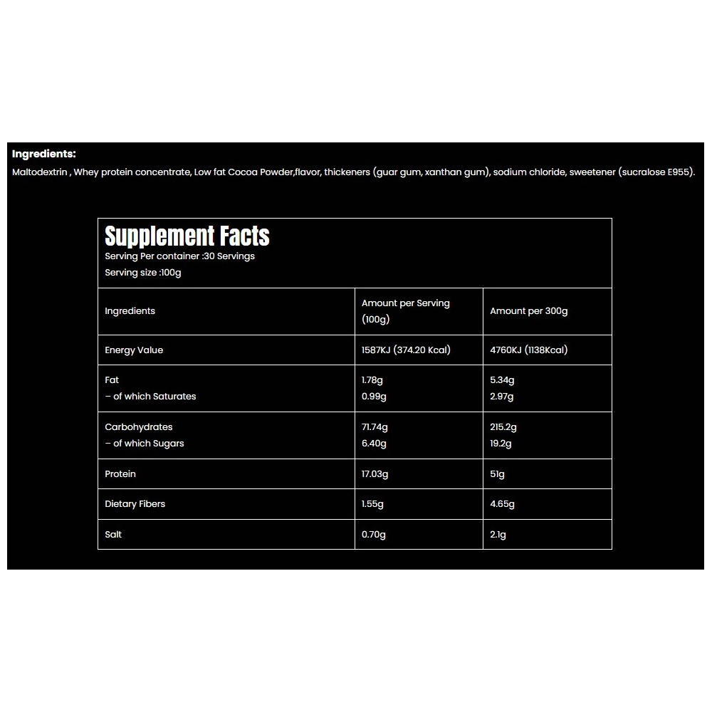 Big is the weight gainer every one needs to add lean muscle mass while increasing size, with no fat gain. It’s the ideal ratio between high biological value whey protein concentrate 85 and clean carbohydrate source, low in fat and sugar. Unlike other products full of amino acids ( amino spike ) and sugars, BIG is low in fat and Low in cholesterol and no added sugars. We only use premium ingredients that work. Lets Get BIG with BIG!